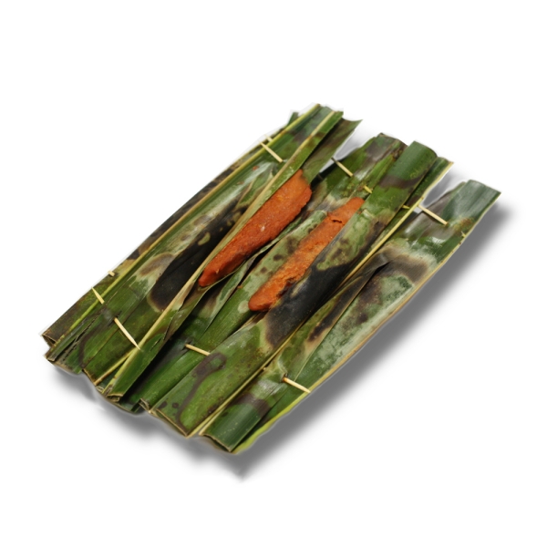 A mixture of fish paste and spices wrapped up as a thin slice using coconut leaf and grilled over a charcoal fire.