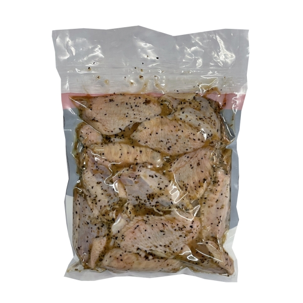 Only the mid-joints of the chicken wings are used in this package. We chose to use coarse black pepper which gives the best possible spicy peppery taste when enjoying these wings from a BBQ fire or oven grilled. These wings are easy to barbecue without the need to skewer them.